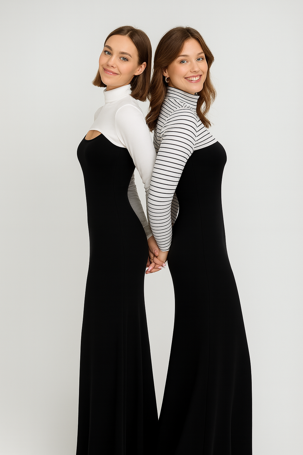 Dik yaka tasarımı sayesinde boyun kısmını zarifçe kapatır ve açık yakalı üstlerde ekstra içlik ihtiyacını ortadan kaldırır. Boyunluk ve kolluk entegre formda olduğu için tek parça ile pratik kullanım sunar — kayma, toplama veya ekstra iç parça arama derdi yok!