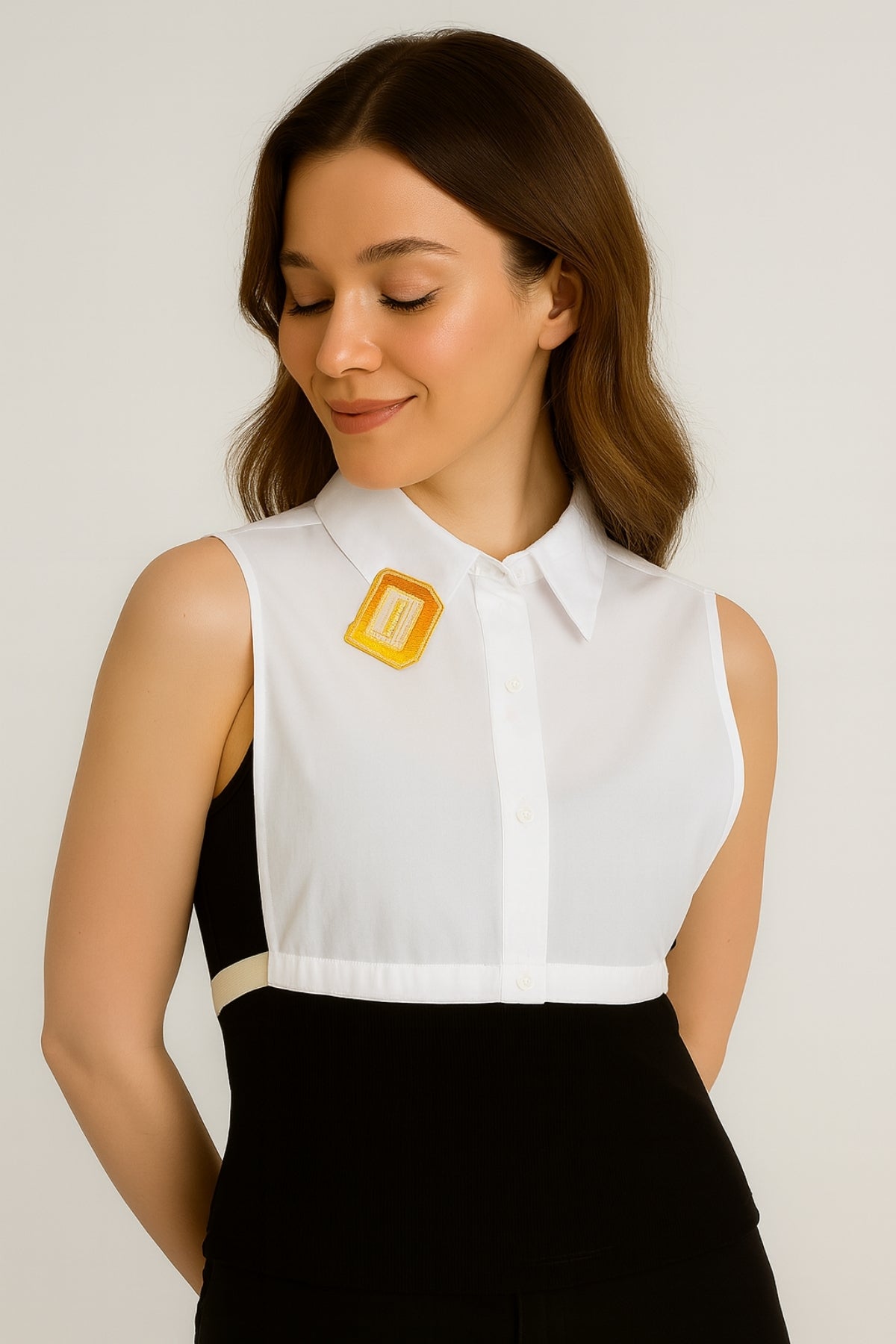 D Harf Detaylı Gömlek Yakası - Beyaz