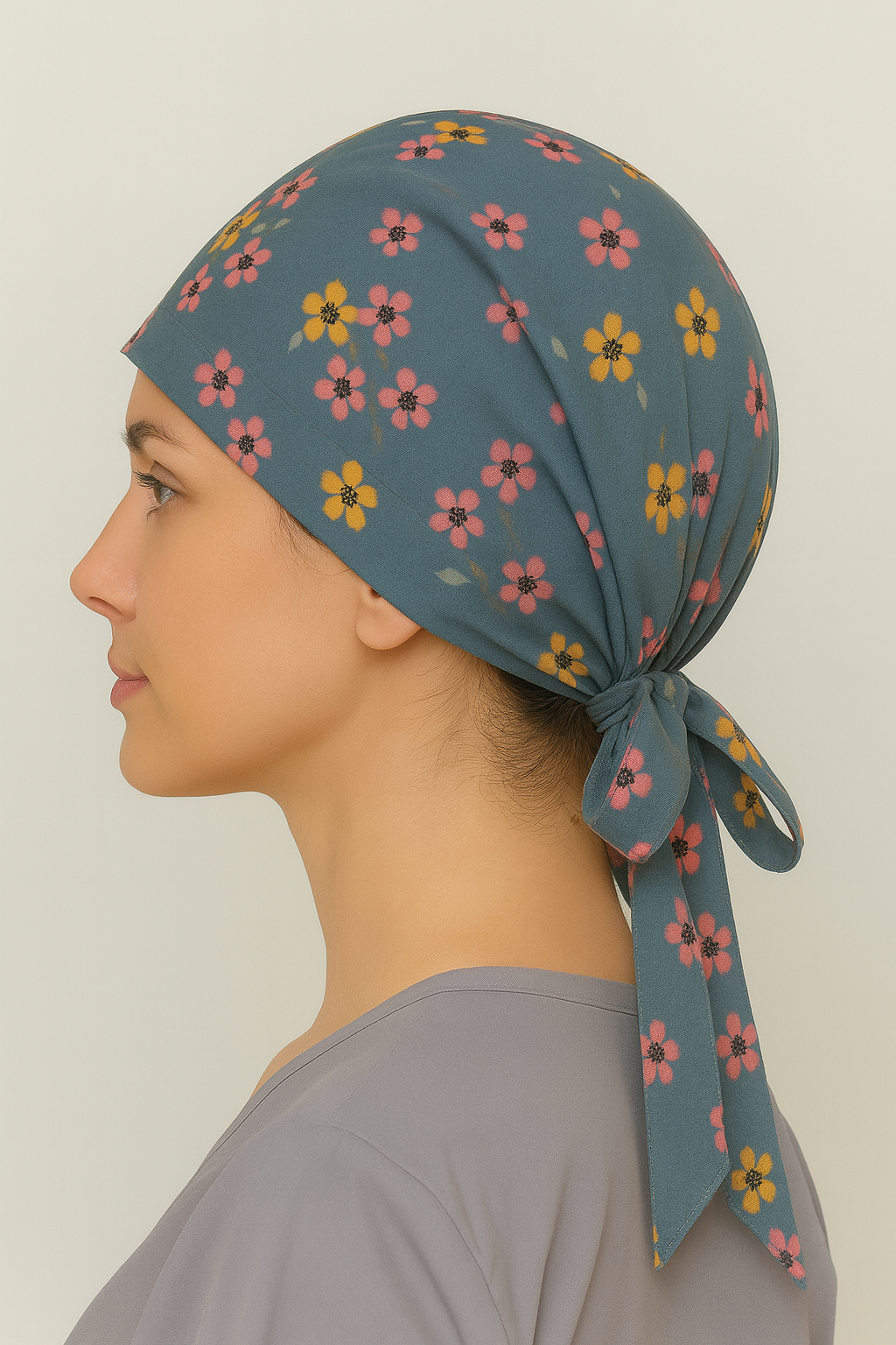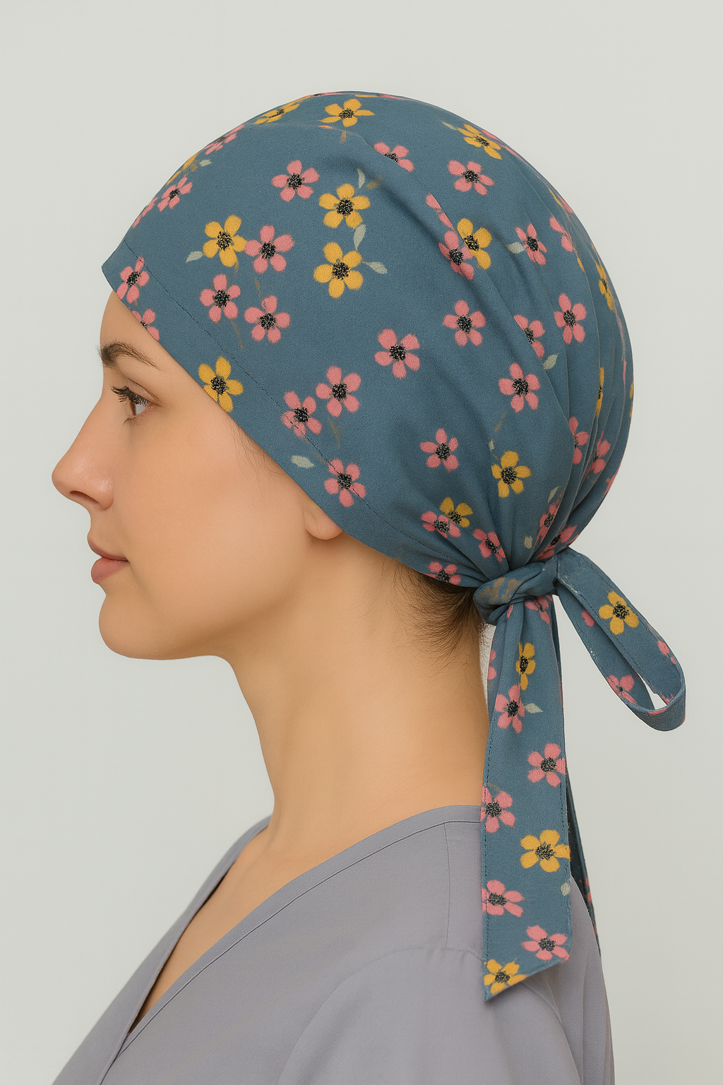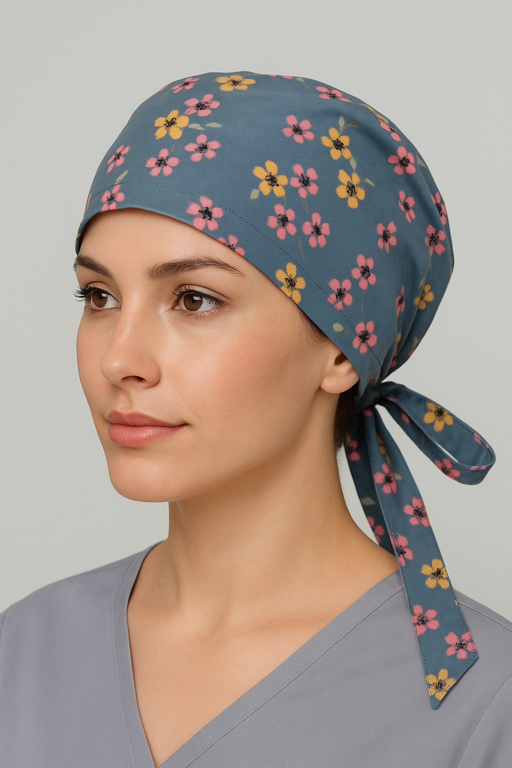 Doğal ve nefes alabilen %100 pamuk kumaştan üretilen bu çiçek desenli cerrahi bone, sağlık çalışanlarının uzun çalışma saatlerinde ihtiyaç duyduğu konforu sağlar. Yumuşak dokusu sayesinde başı terletmez, hijyenik bir kullanım sunar. Arka kısmındaki bağcıklı tasarımıyla kolayca ayarlanabilir ve her baş ölçüsüne uyum sağlar. Canlı çiçek desenleri ise çalışma ortamına zarif ve enerjik bir hava katar.