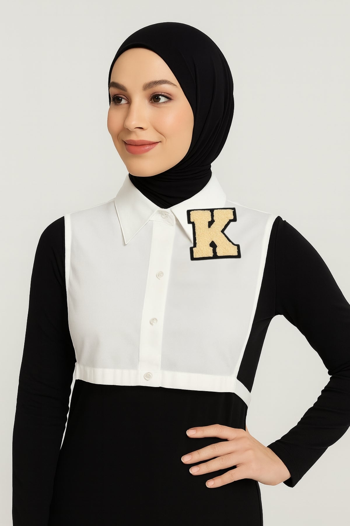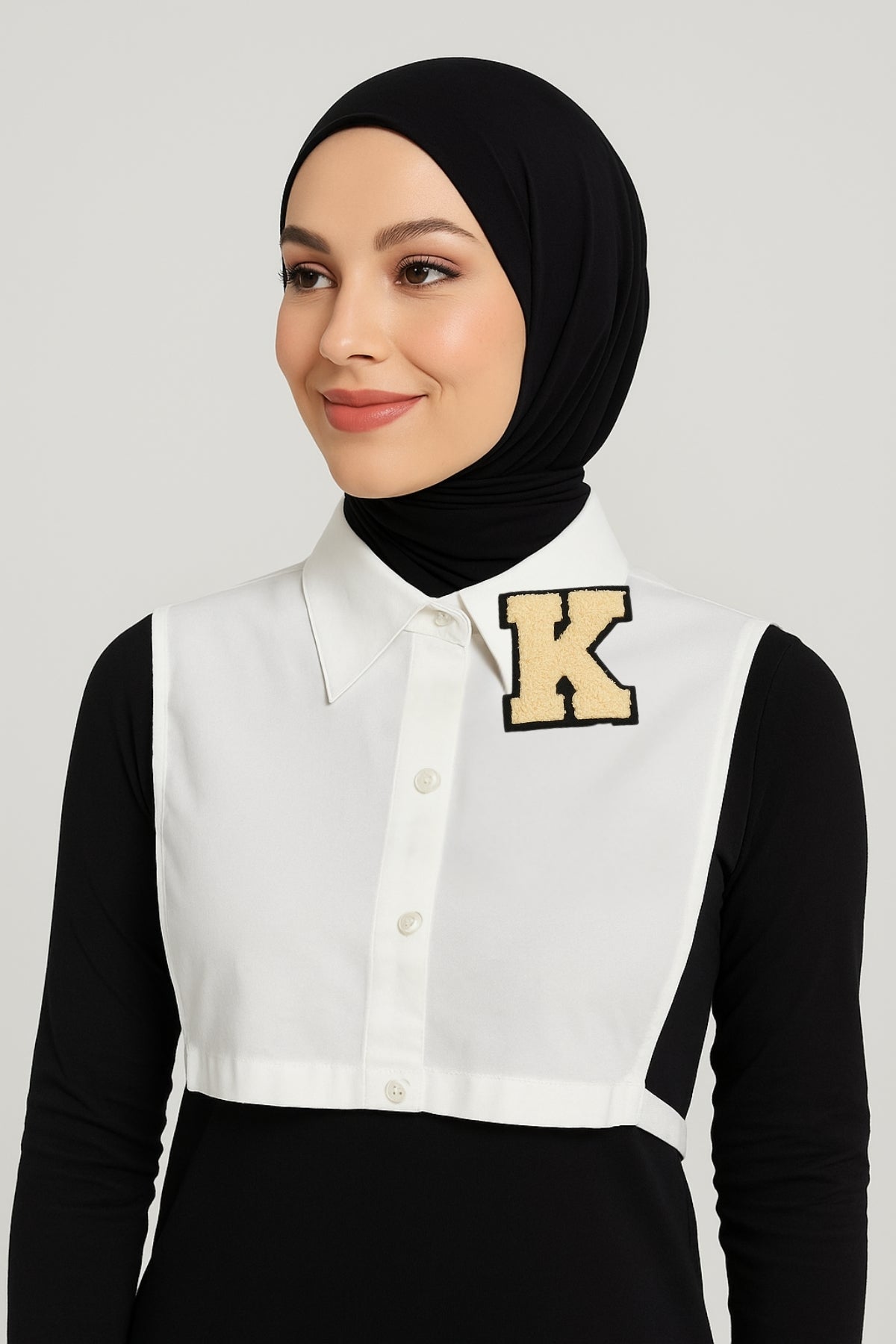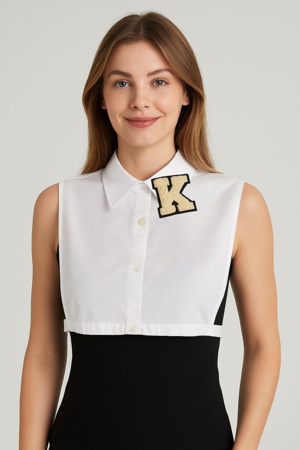 K Harf Detaylı Gömlek Yakası - Beyaz