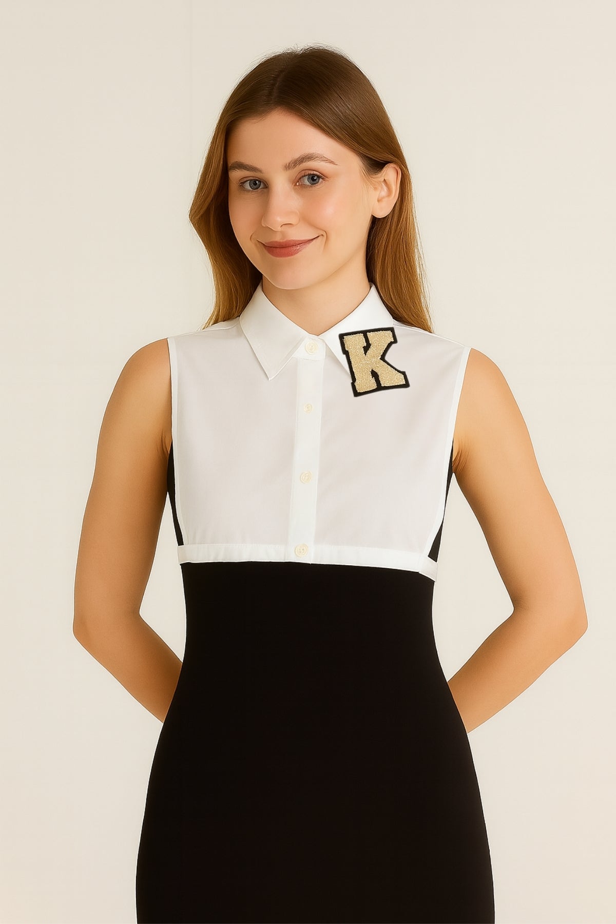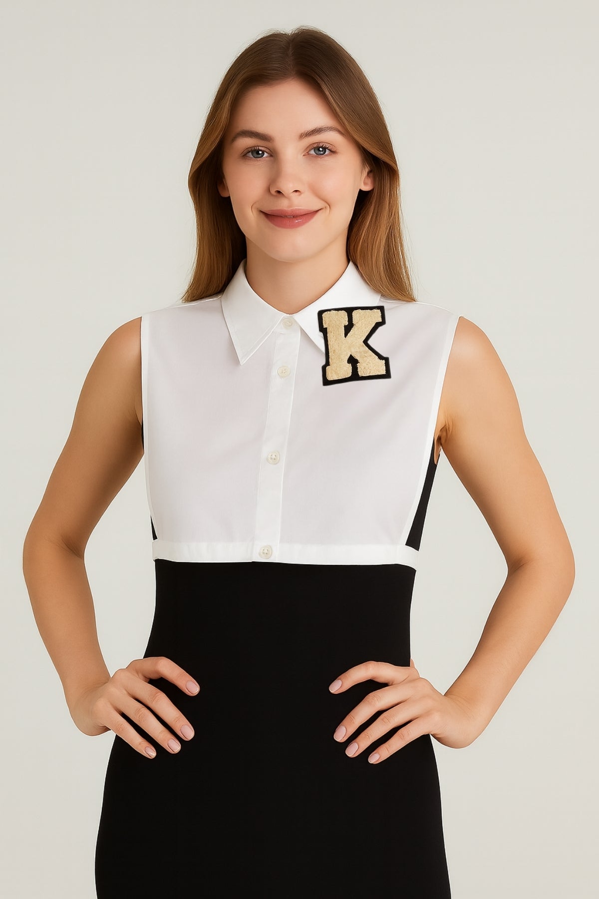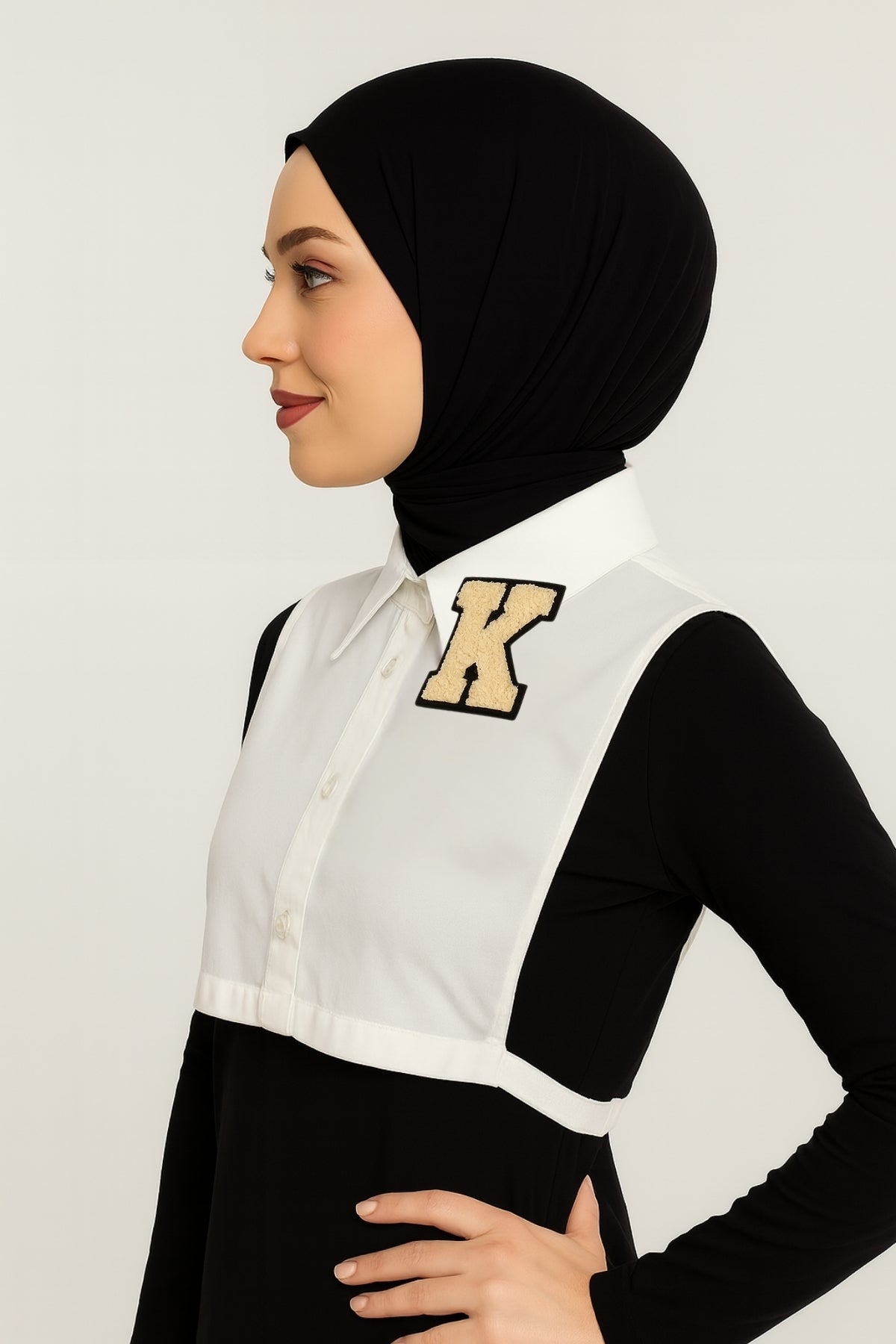 K Harf Detaylı Gömlek Yakası - Beyaz