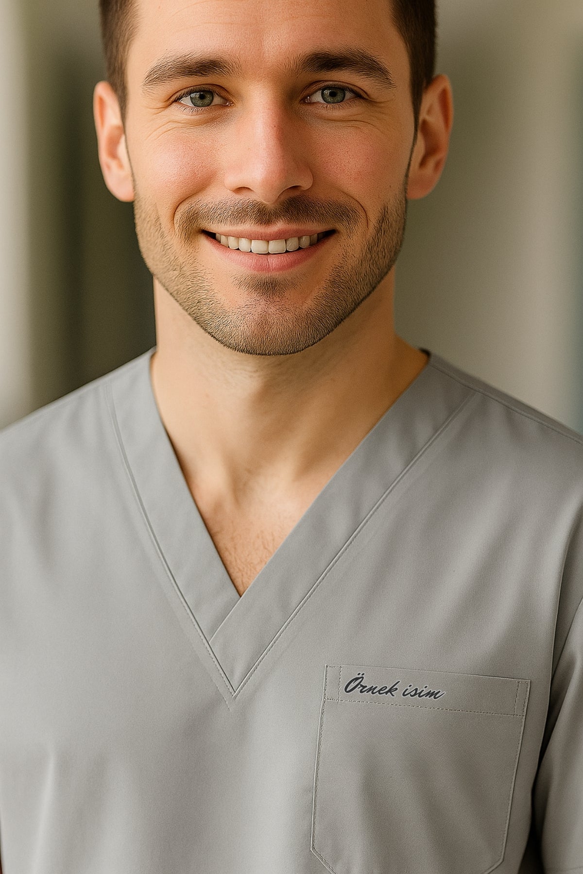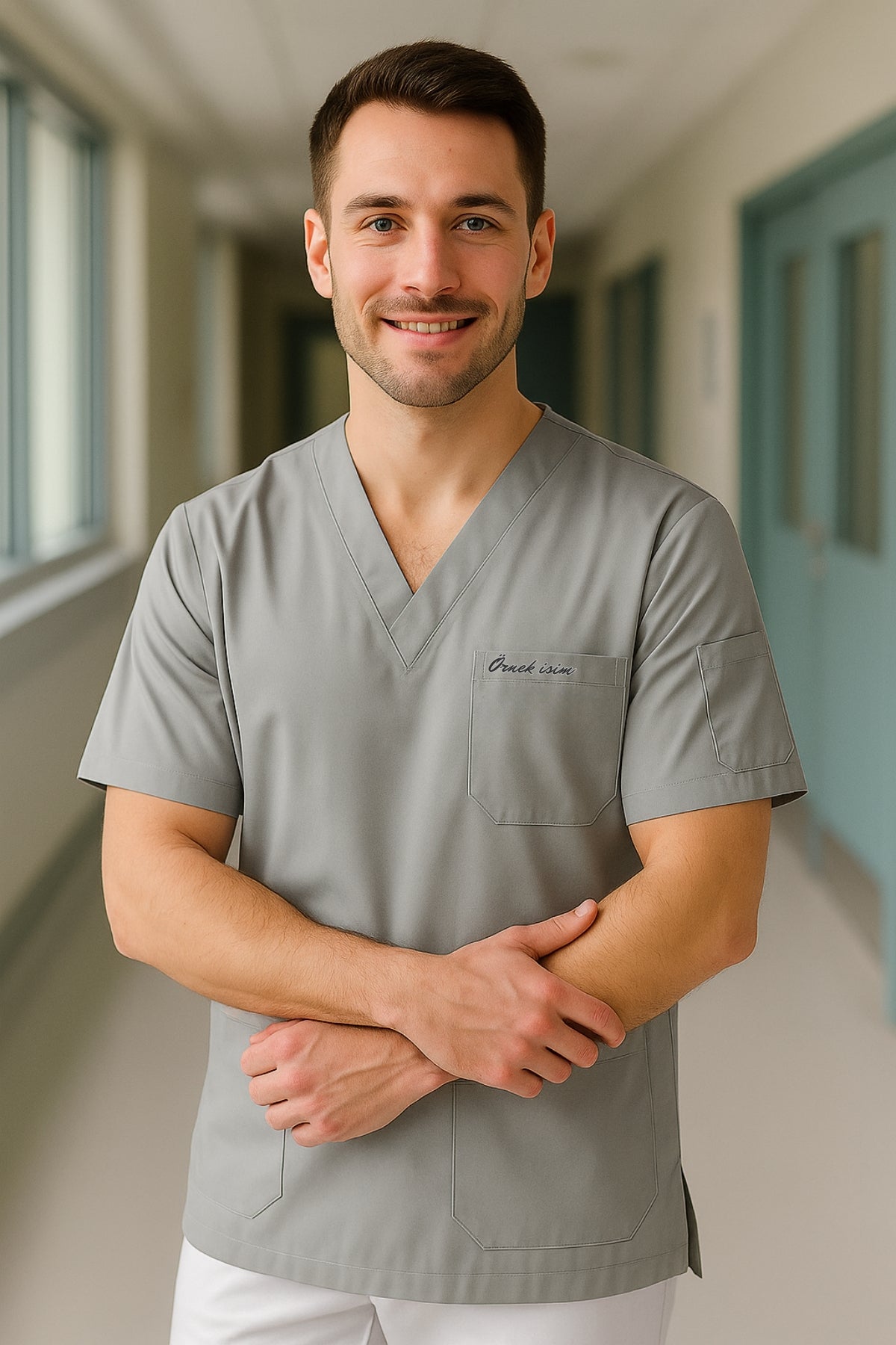Mirach Med Kişiye Özel İsimli 4 Cepli Scrubs Forma ile hastane ve klinik ortamında profesyonel ve özgün bir görünüm elde edin.