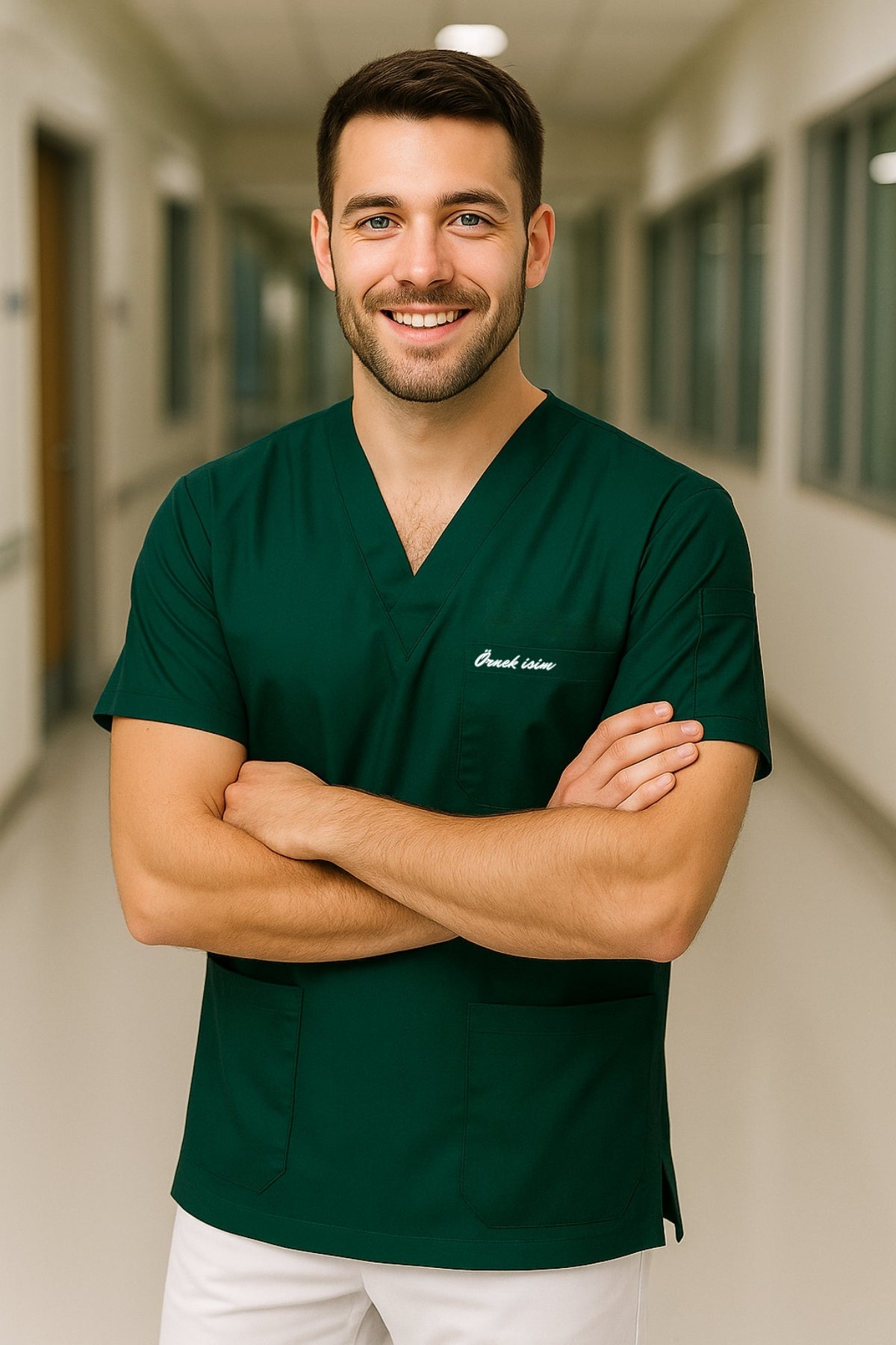 Mirach Med Kişiye Özel İsimli 4 Cepli Scrubs Forma ile hastane ve klinik ortamında profesyonel ve özgün bir görünüm elde edin.