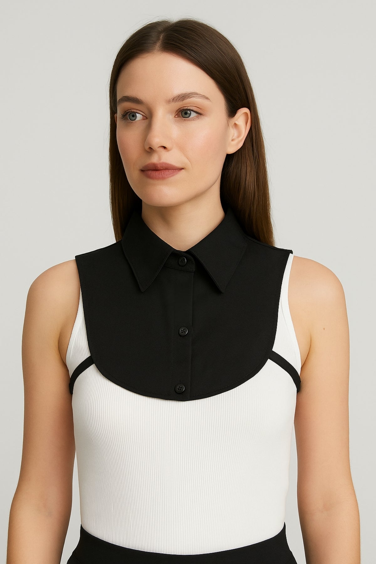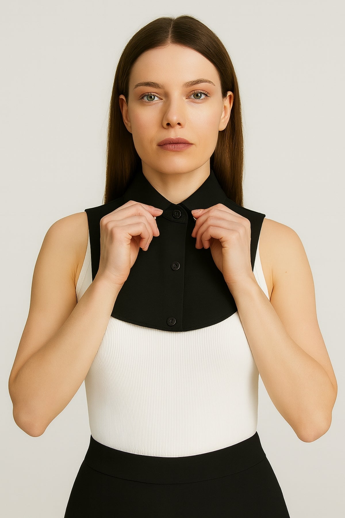 Ceket, kazak veya hırka altına kolayca uyum sağlayan bu model, siyah rengiyle her kombine ferahlık ve zarafet katar. Günlük, ofis veya özel gün kombinlerinde düzenli bir görünüm elde etmek için idealdir.