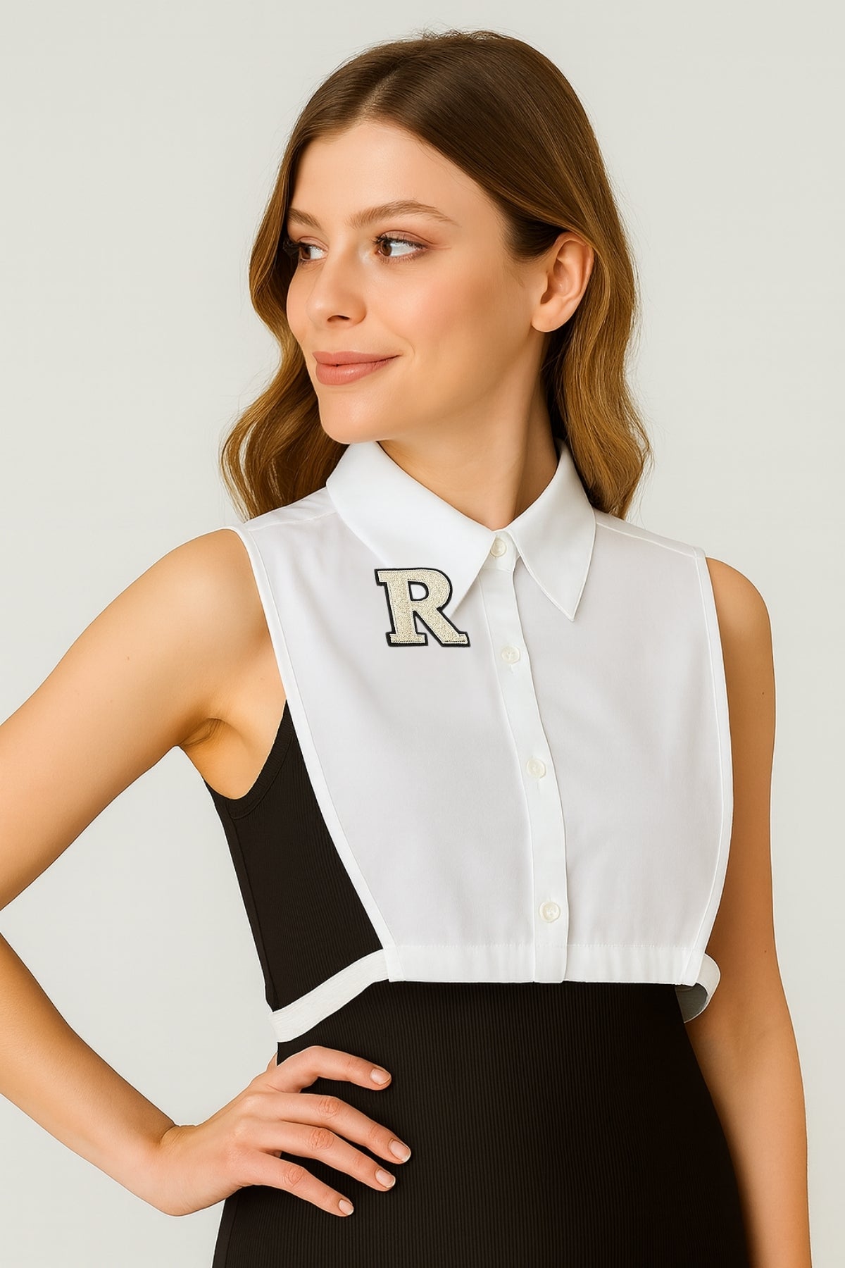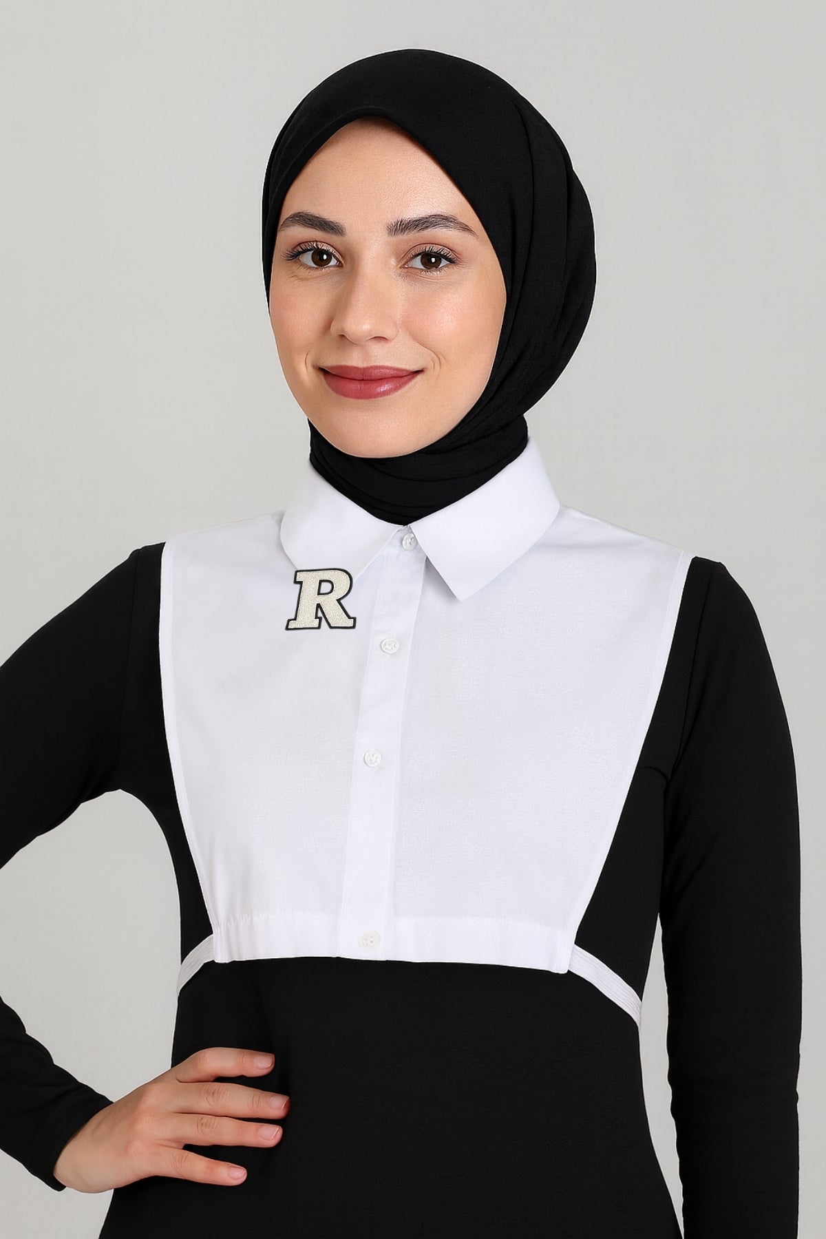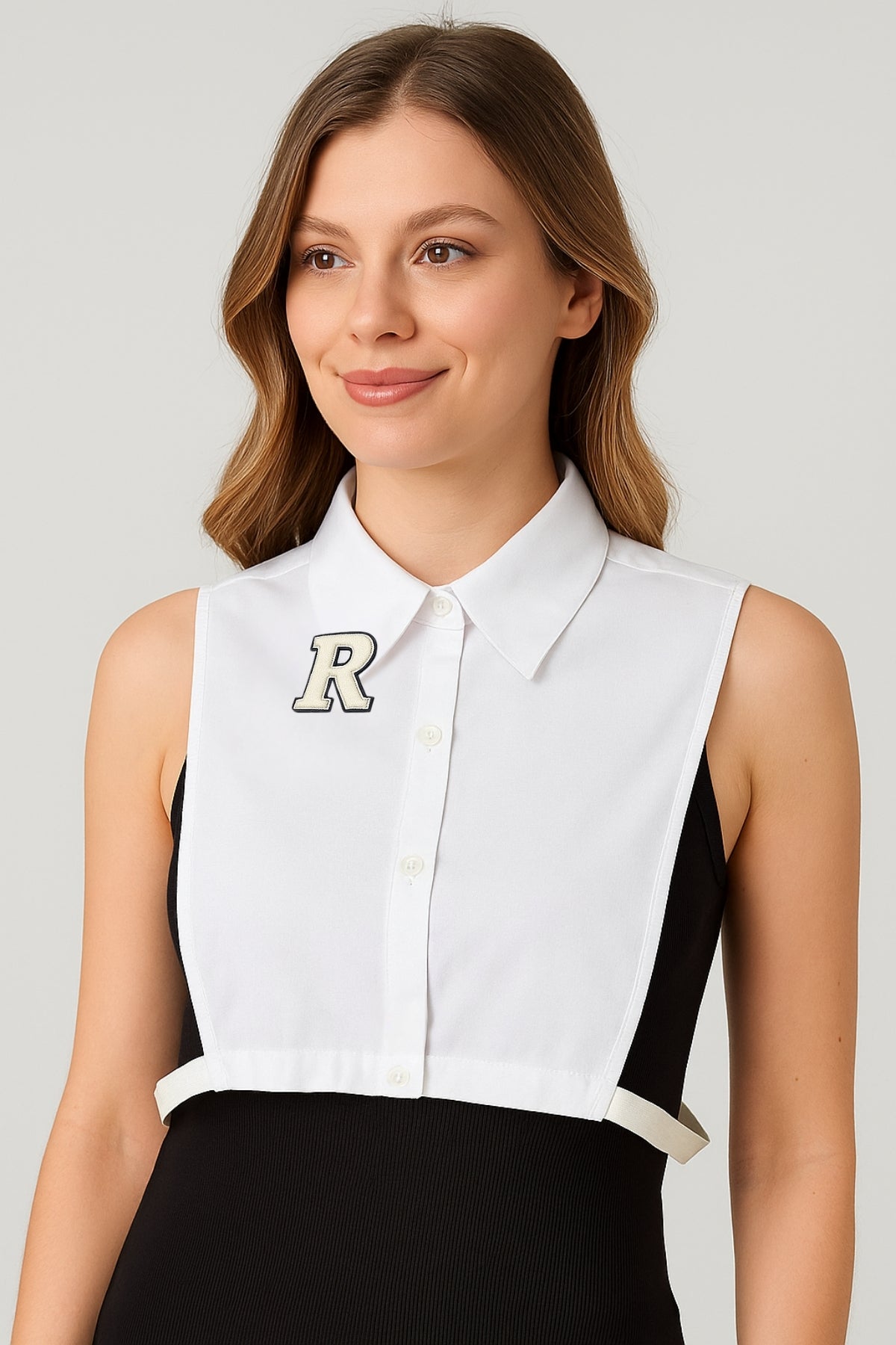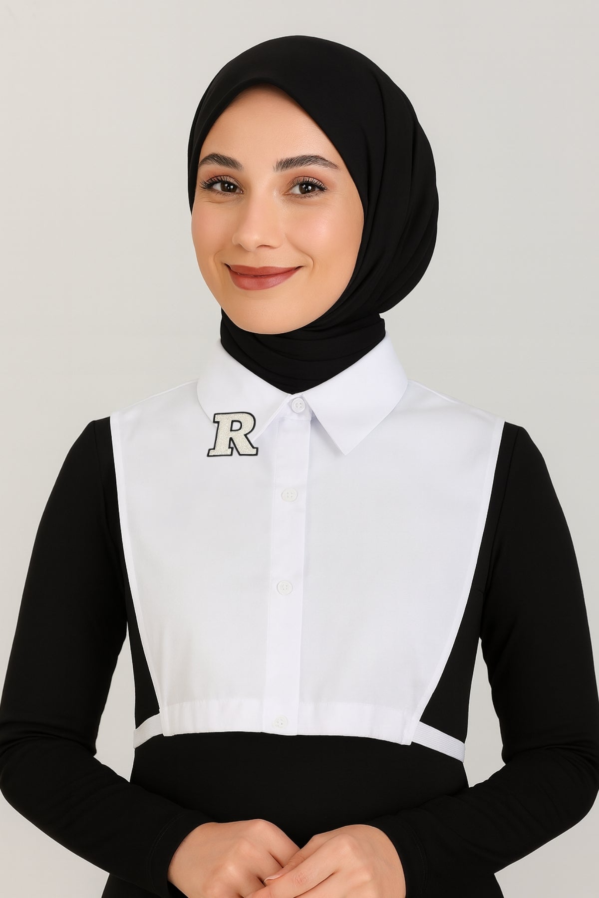 Bej R Harf Detaylı Gömlek Yakası - Beyaz