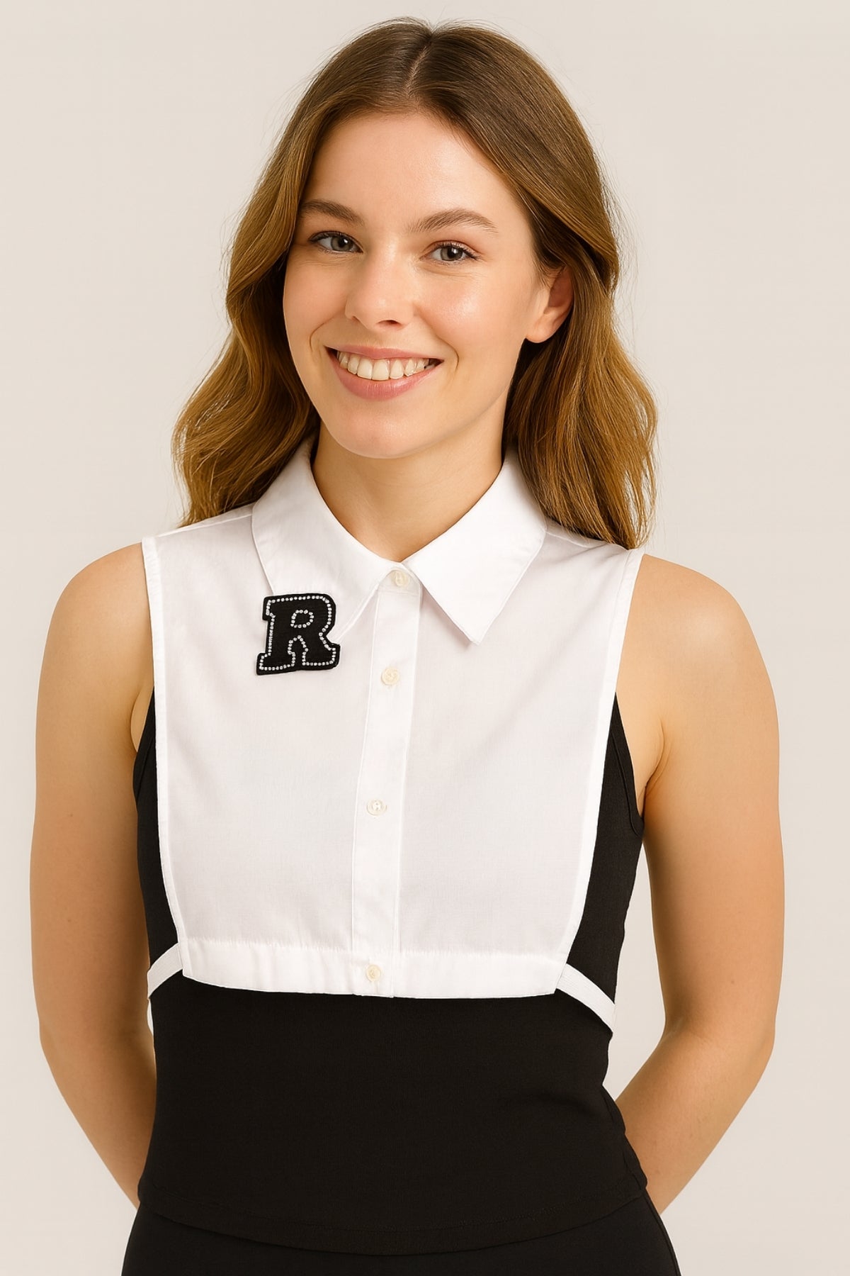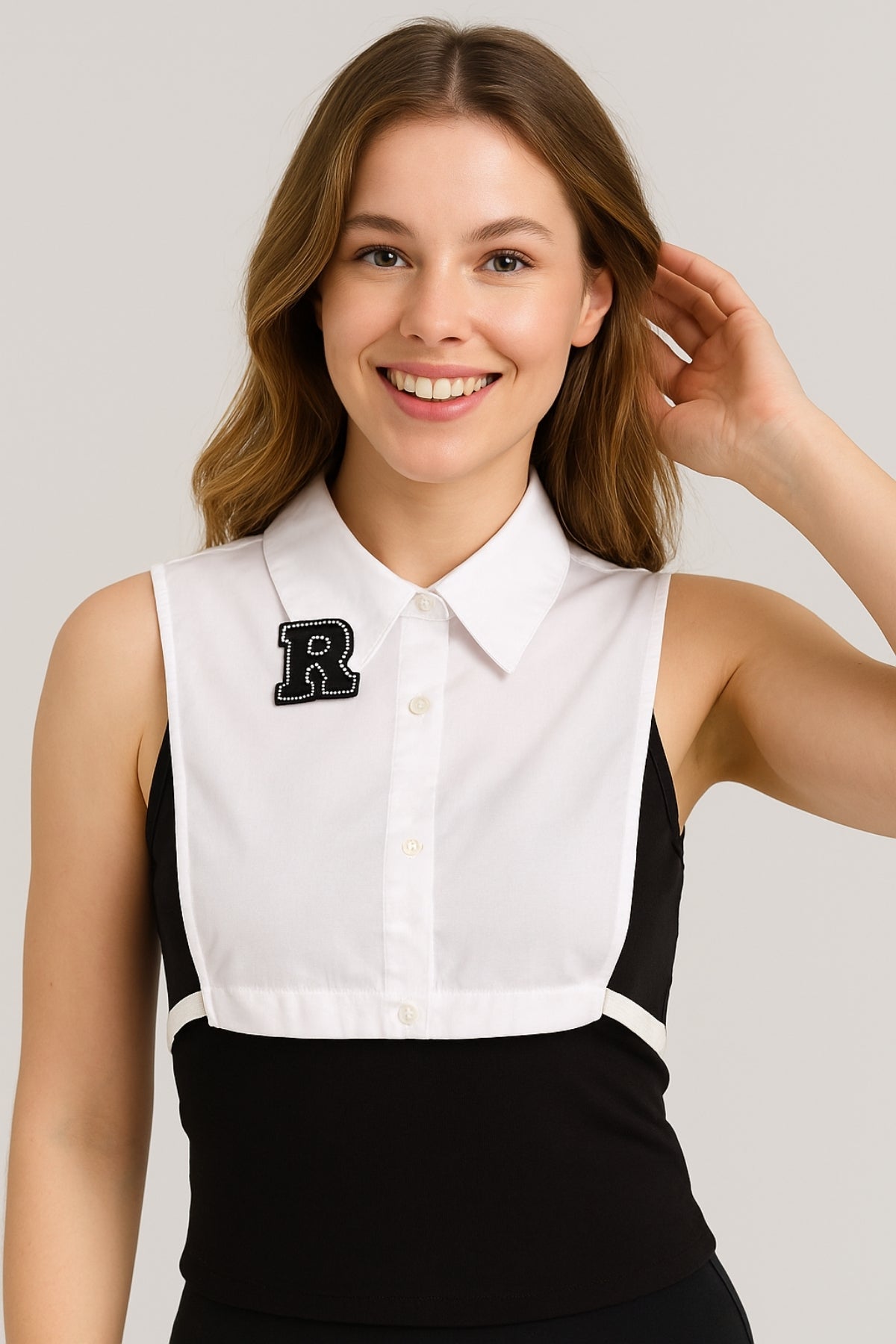 Siyah R Harf Detaylı Gömlek Yakası - Beyaz