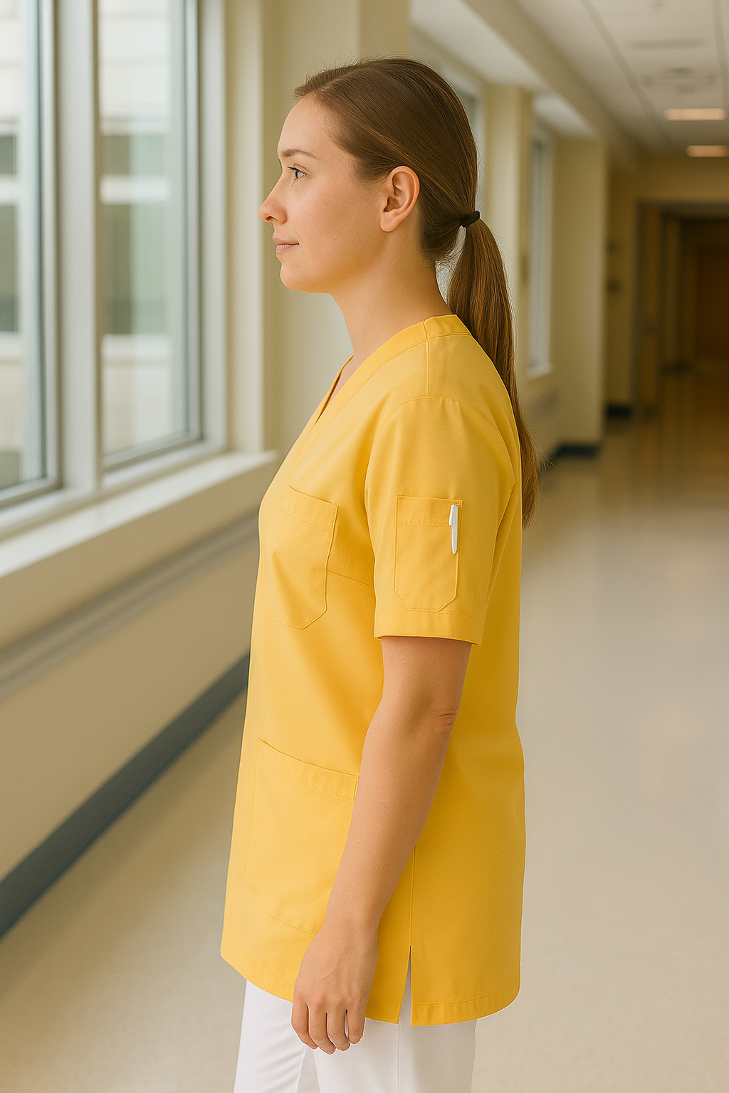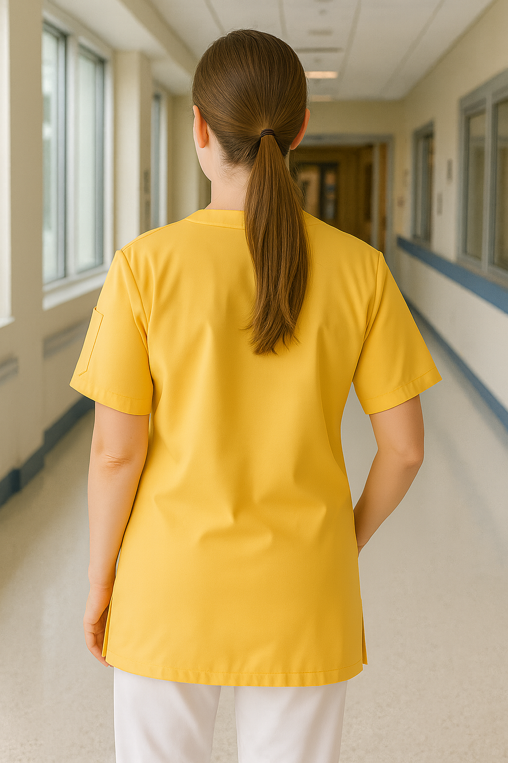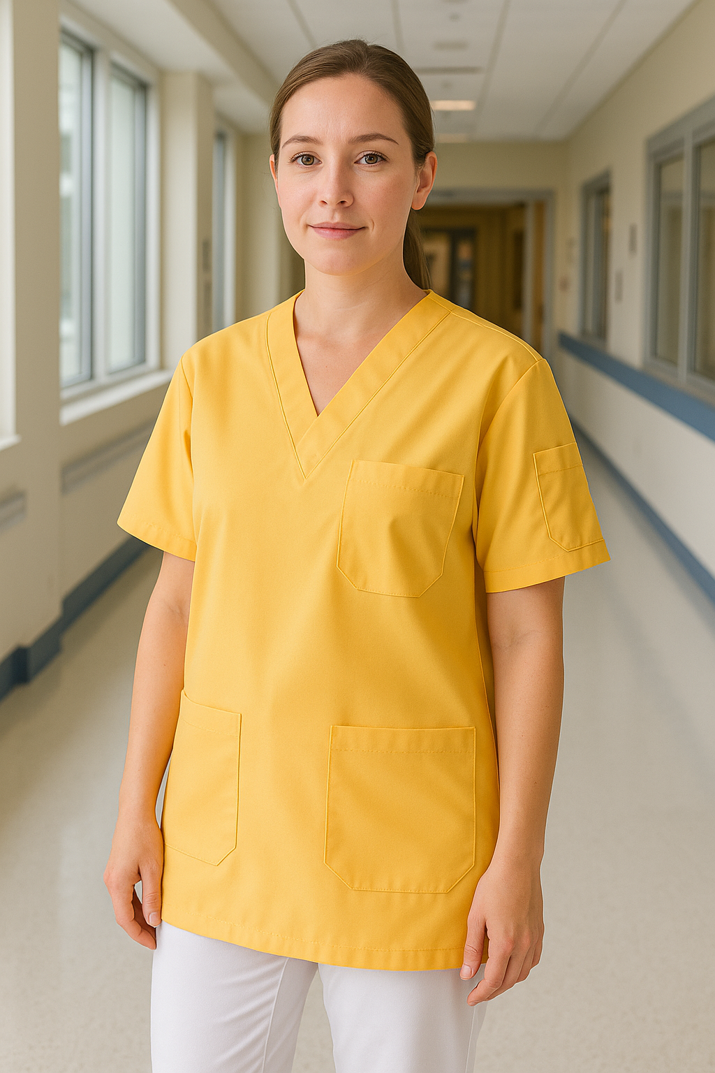 Limon tek üst scrubs forma, sağlık çalışanlarının uzun saatler boyunca ihtiyaç duyduğu konforu ve dayanıklılığı bir arada sunar. %67 PES ve %33 pamuk karışımı özel kumaşı sayesinde terletme ve solma yapmaz, gün boyu nefes alabilen yapısı ile ferahlık sağlar. Unisex kalıpta üretilmiştir; hem kadın hem erkek sağlık çalışanları için uygundur. Kolay ütülenebilir yapısı ile çok buruşma yapmaz, pratik cepleri ile işlevsellik sunar. Klinikler, hastaneler ve laboratuvarlar için profesyonel bir seçimdir.